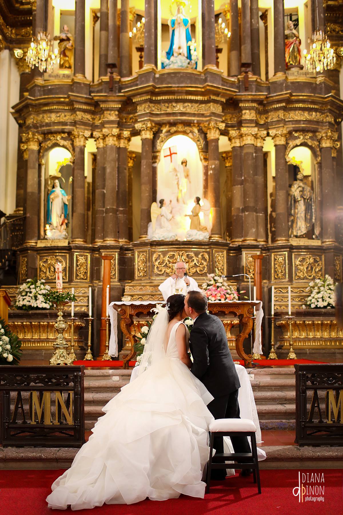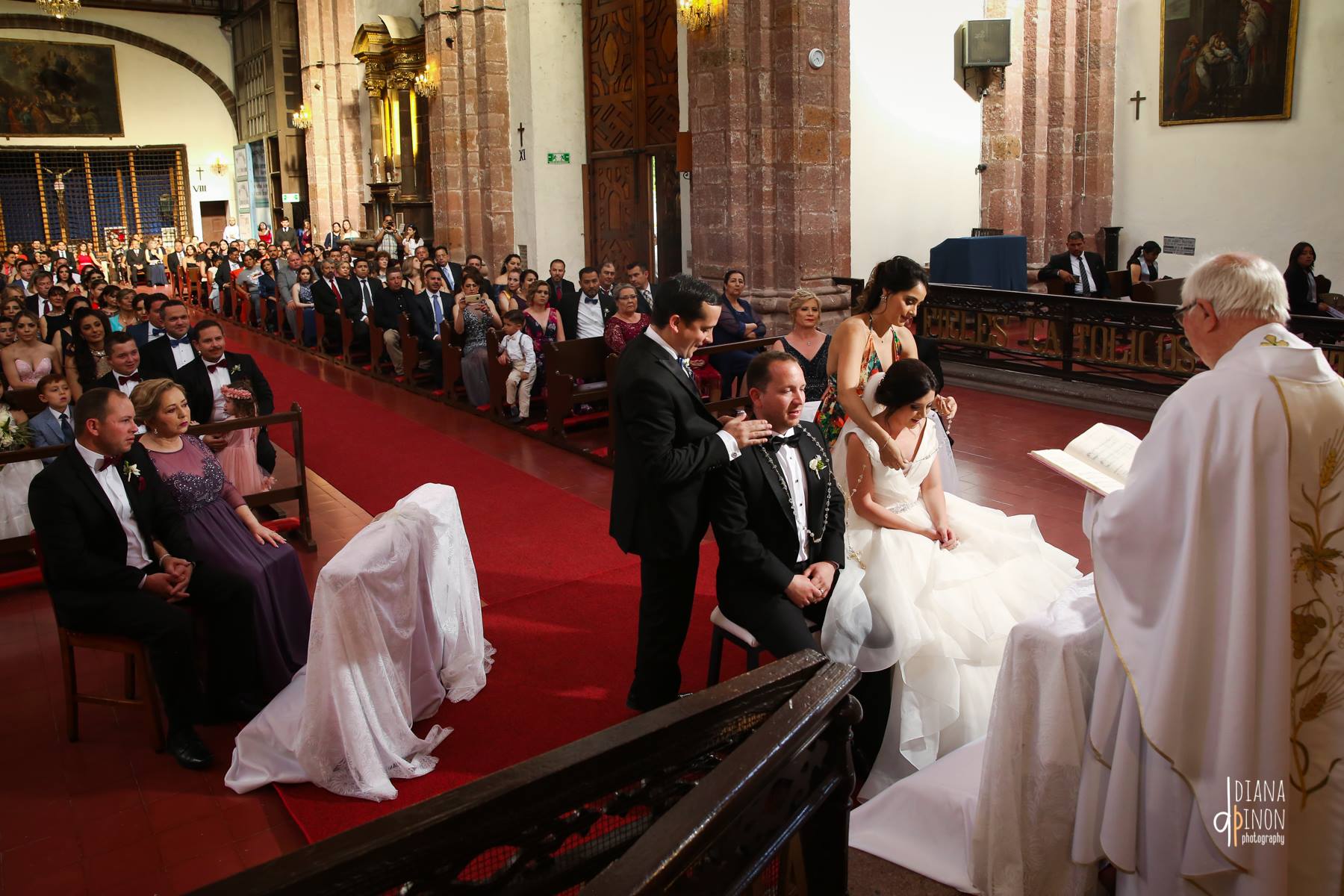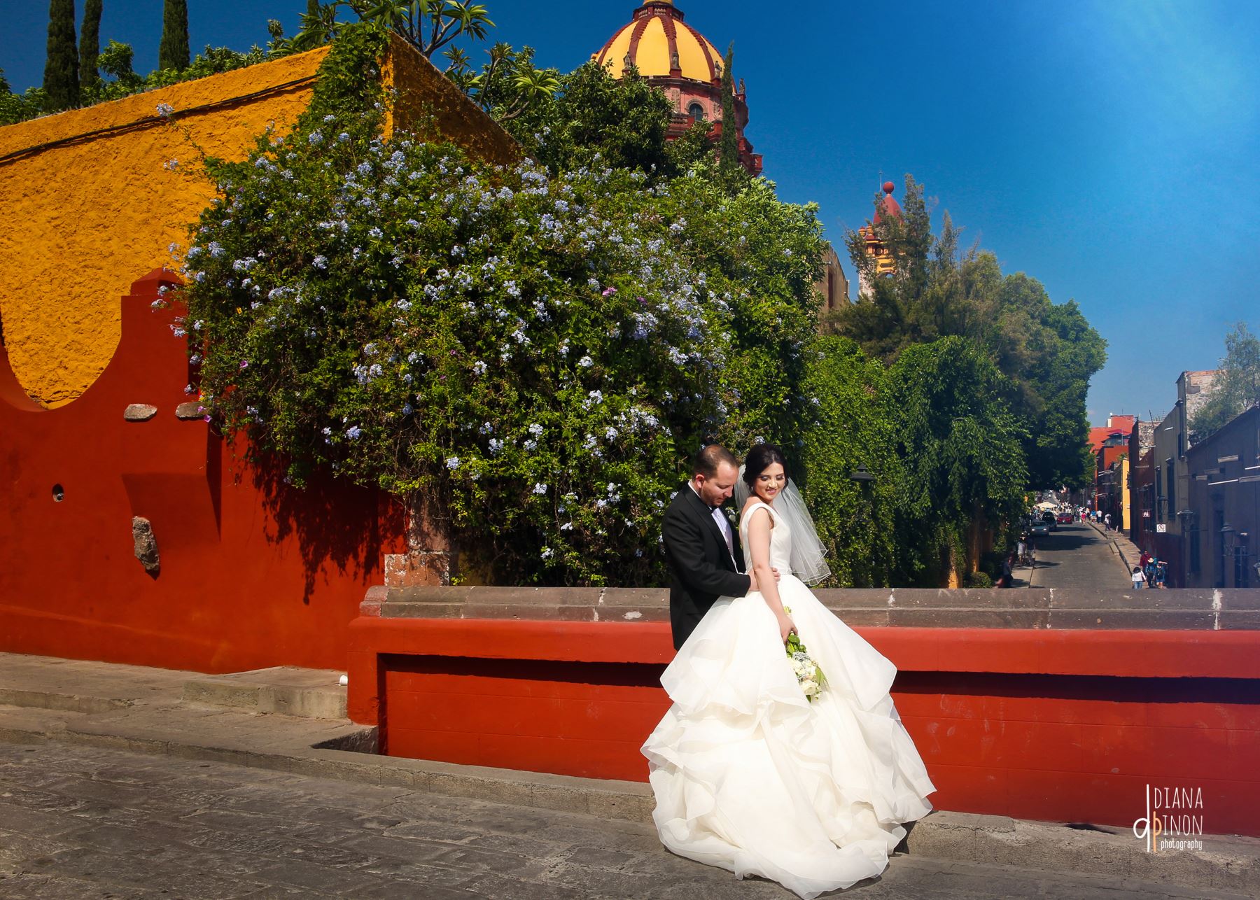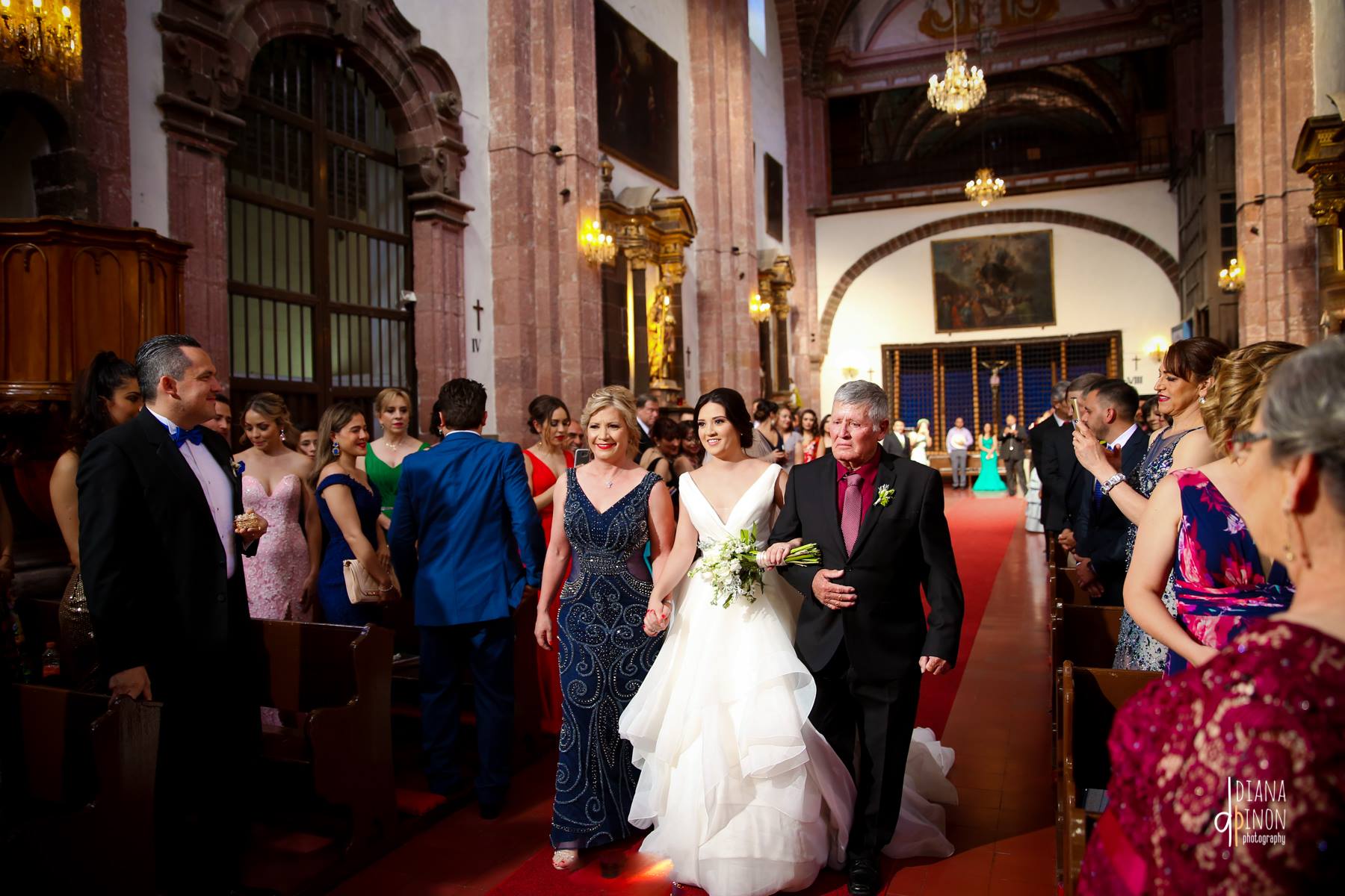 Llegó el día principal, los novios se prepararon en la hacienda acompañados de sus familias. La ceremonia se celebró en el Templo de la Purísima Concepción, otra joya colonial que cuenta con una de las colecciones pictóricas más impresionantes de la época. Una sesión por los callejones de San Miguel fue un acierto total, La catedral con estilo gótico tan característico sirvió de escenario, igual que todo el centro histórico para hacer unas fotos lo que le sigue de espectaculares. Cuando las vean no podrán negarlo, ah y los aplausos van para Diana Piñón.