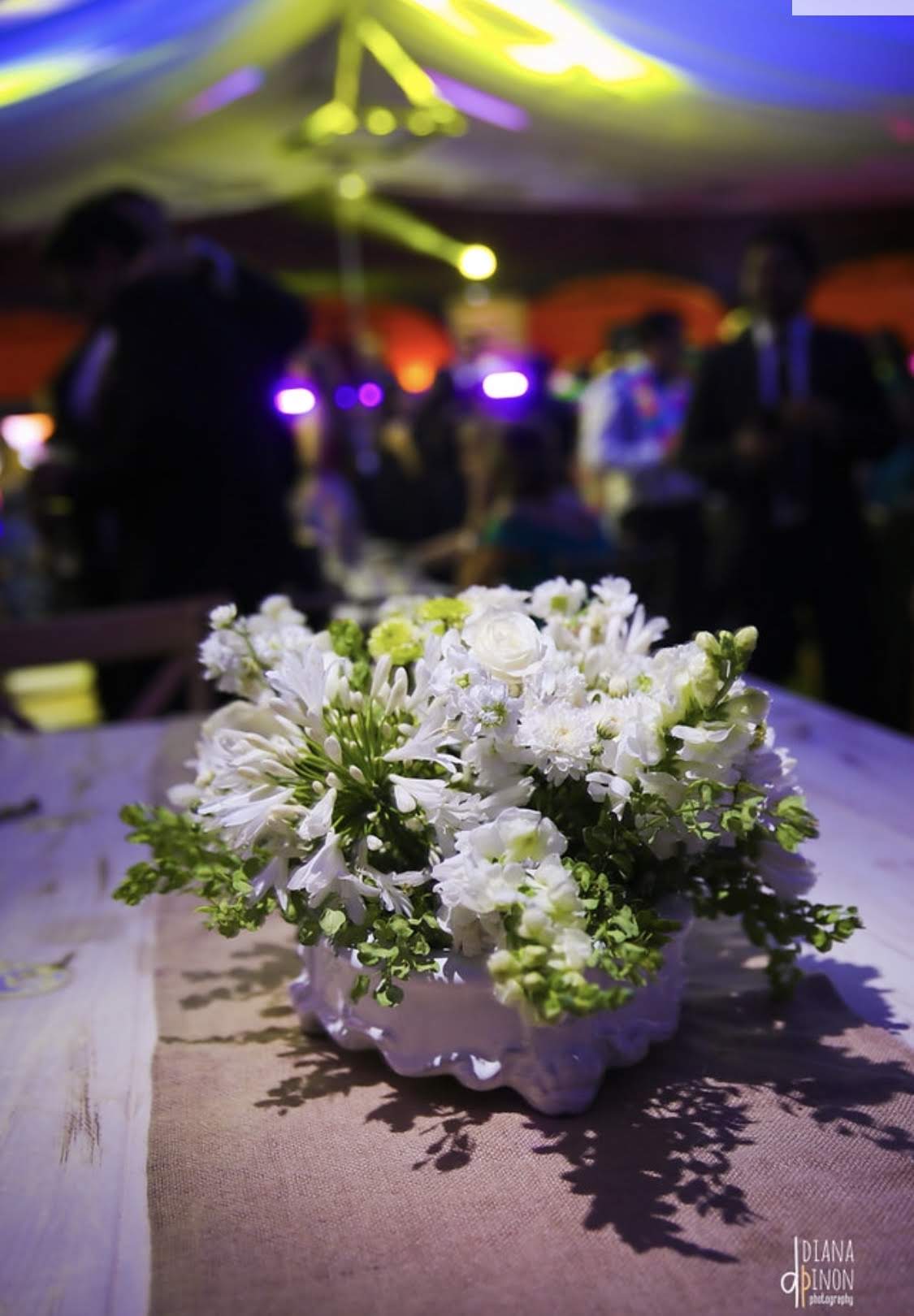 Regresaron a la hacienda y la encontraron transformada, una gran carpa a la entrada, sobre la explanada, de la fuente al centro parecían brotar flores blancas y se desperdigaban por todo el lugar, por la mesas, se agolpaban en la mesa de novios y detrás de ellos.