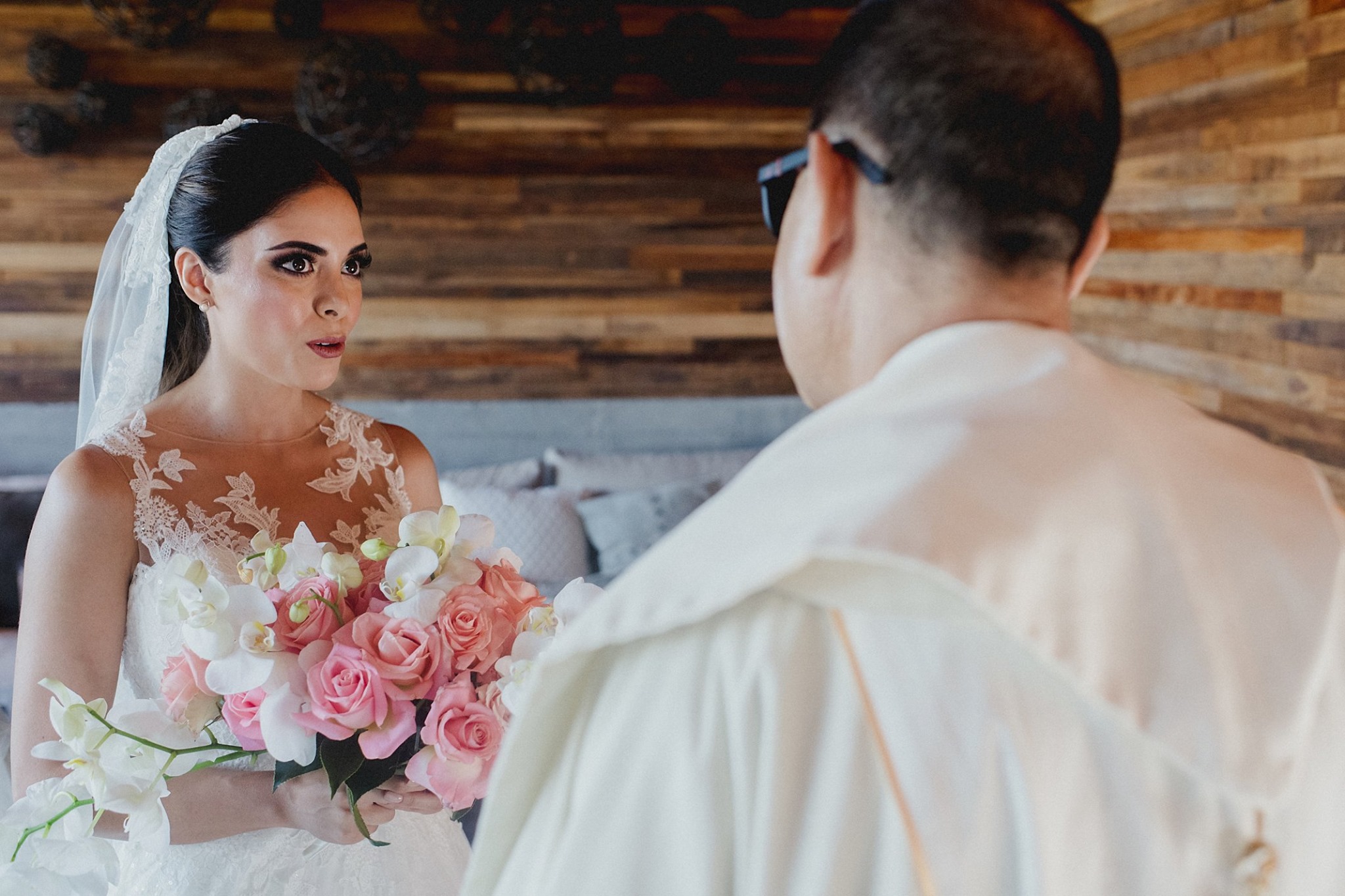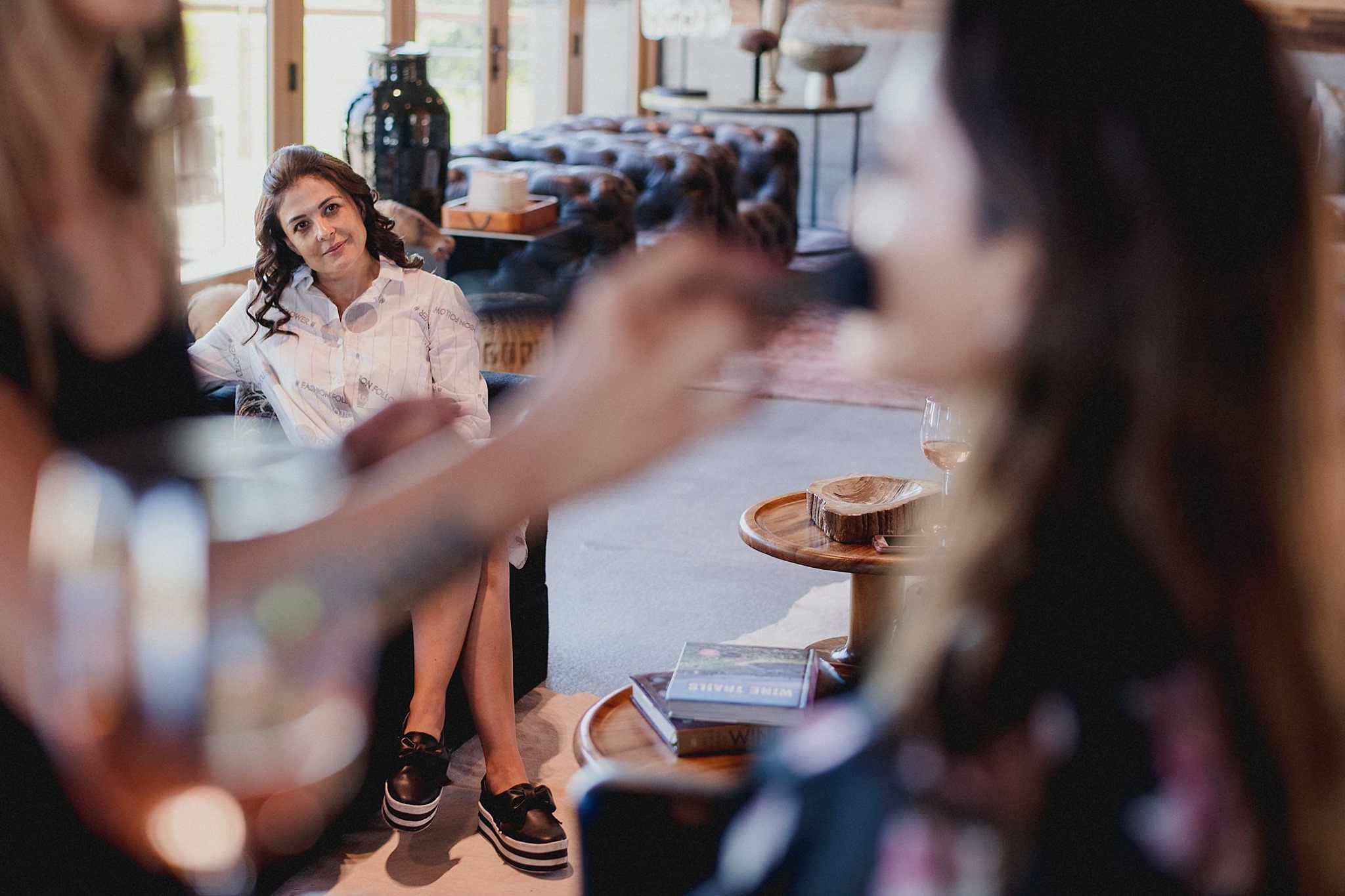 El día llegó y comenzó con el first look de los novios en la hermosa capilla con vista a la plantación, ¡instante mágico! La novia estaba hermosísima (maquillaje y peinado de El Salón Hair Dressing Club). Luego del momento solemne una sesión de fotos en medio del viñedo. Quedaron increíbles gracias al talentoso Jonathan Guajardo Wedding Photography. Le siguió el cocktail en una terraza súper relajada acompañando el momento con un delicioso vino rosado (sello de la casa) mini tartaletas saladas y bolitas de queso y nuez. Chillout total.