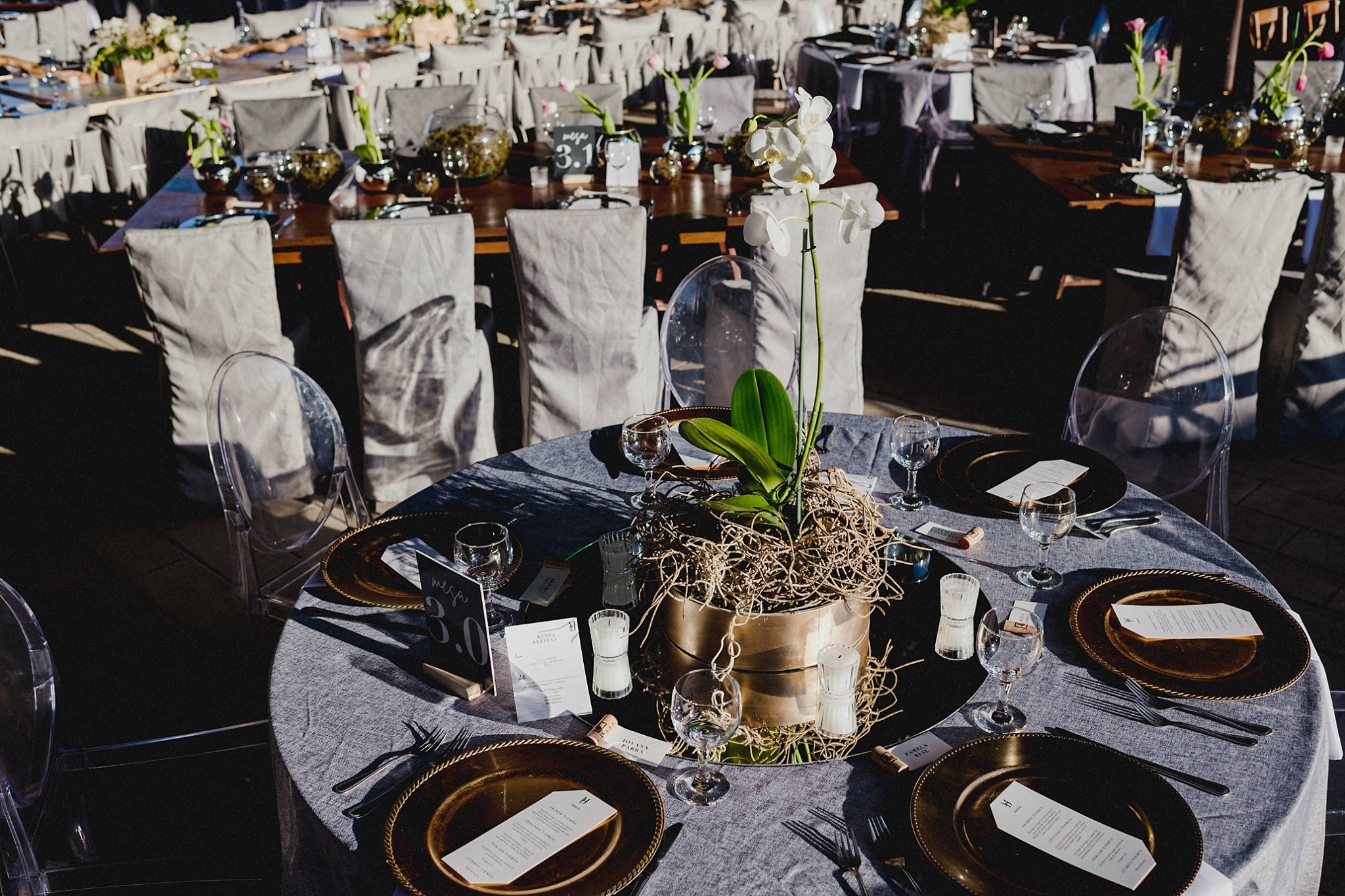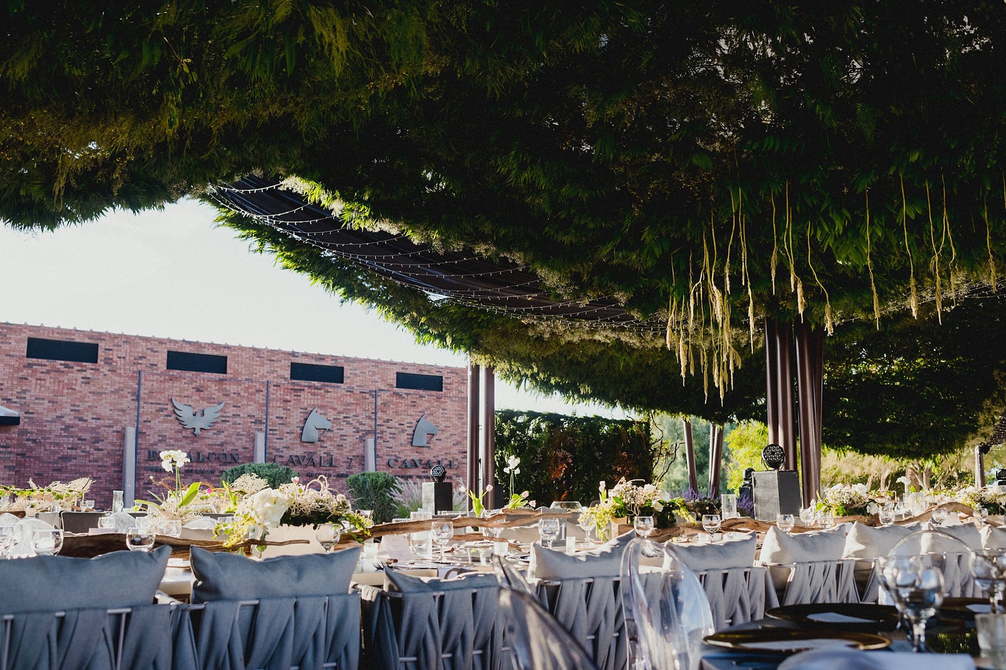 El reto vino después ¿alguien dijo Vino? Cuando nos contaron que querían casarse al aire libre, en un viñedo y donde pudieran acudir todos sus seres amados. El sitio ideal sin duda era CAVALL 7, un hermoso viñedo caracterizado por su arquitectura cuidadosa de cada detalle, el desafío era transformar sus velarias al aire libre sin que dejara de sentirse la libertad del espacio pero previendo las altas probabilidades de lluvia que había para la fecha elegida. ¡Reto aceptado!