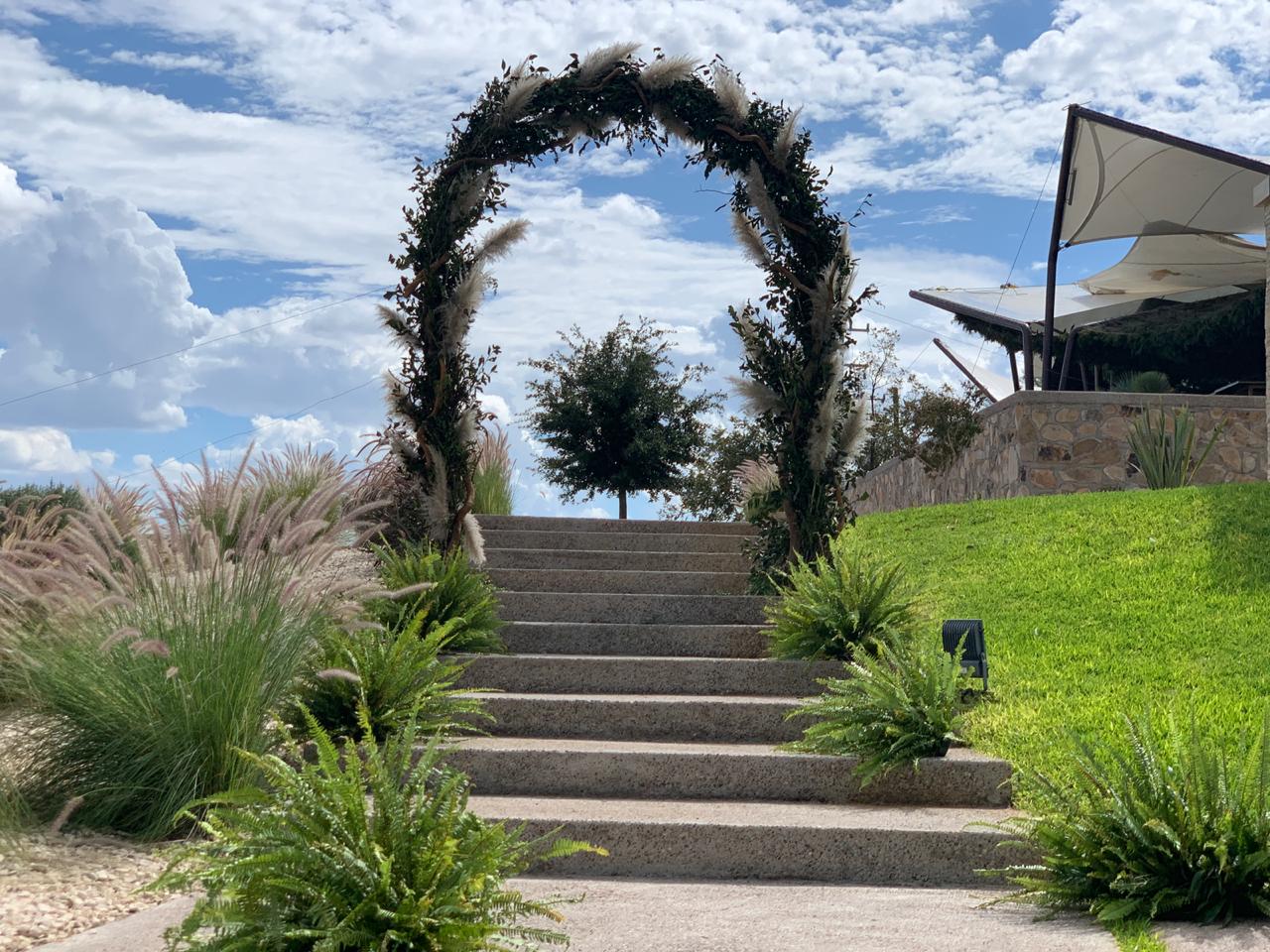 Les propusimos un jardín invertido: un cielo verde lleno de palmas, plumosos, flor de amaranto y statices. Trazos marcados por la naturaleza y caminos de luz. La perspectiva les fascinó y no quedaba más que aplicarse y concretarla. Lograrlo implicó semanas de arduo trabajo de CREATO Studio y Bukei Diseño en conjunto, cuidar cada elemento y darle movimiento para que estuviera en armonía con el resto del lugar. ¡Misión cumplida!