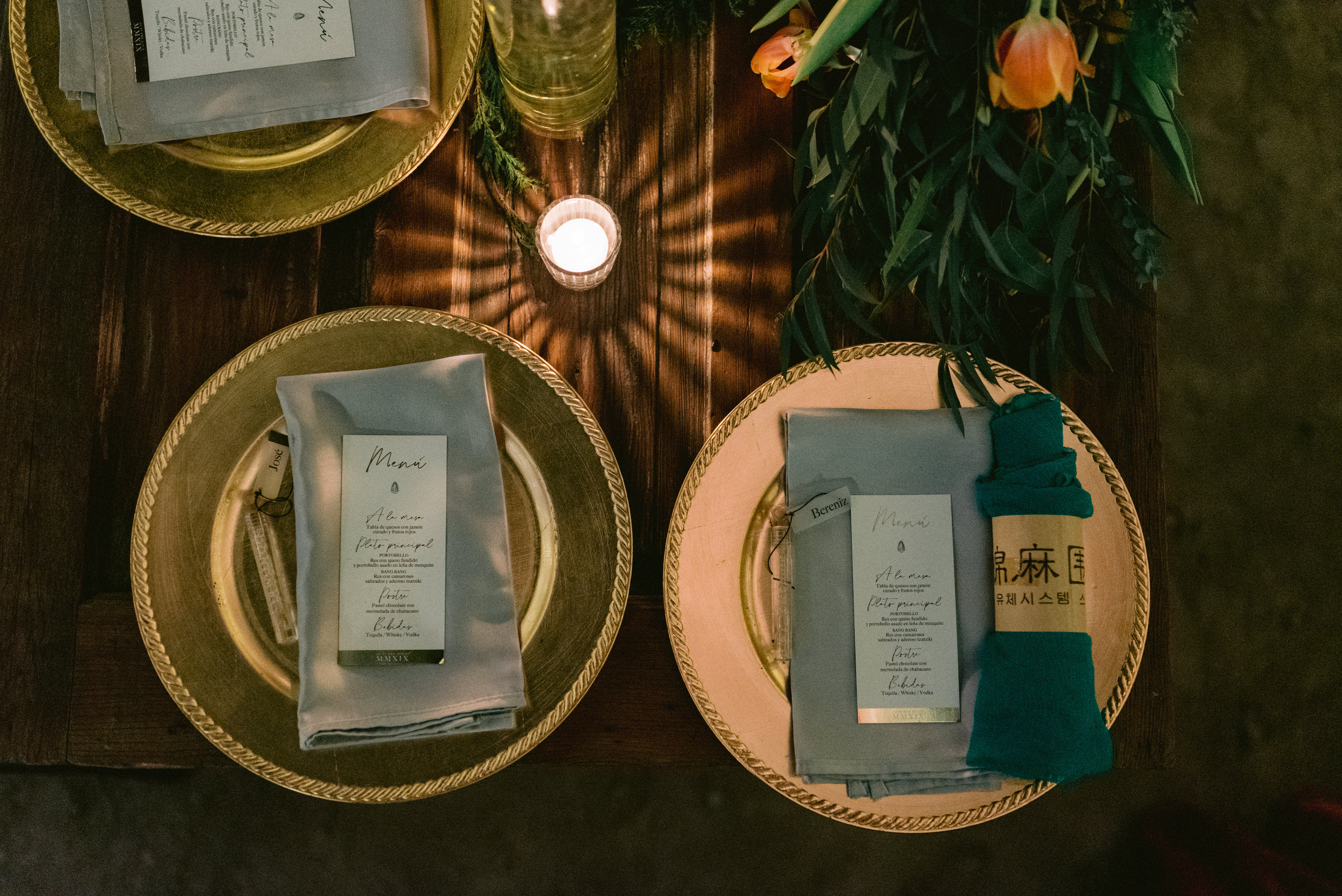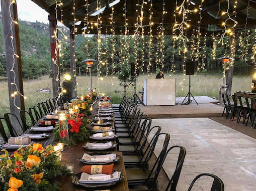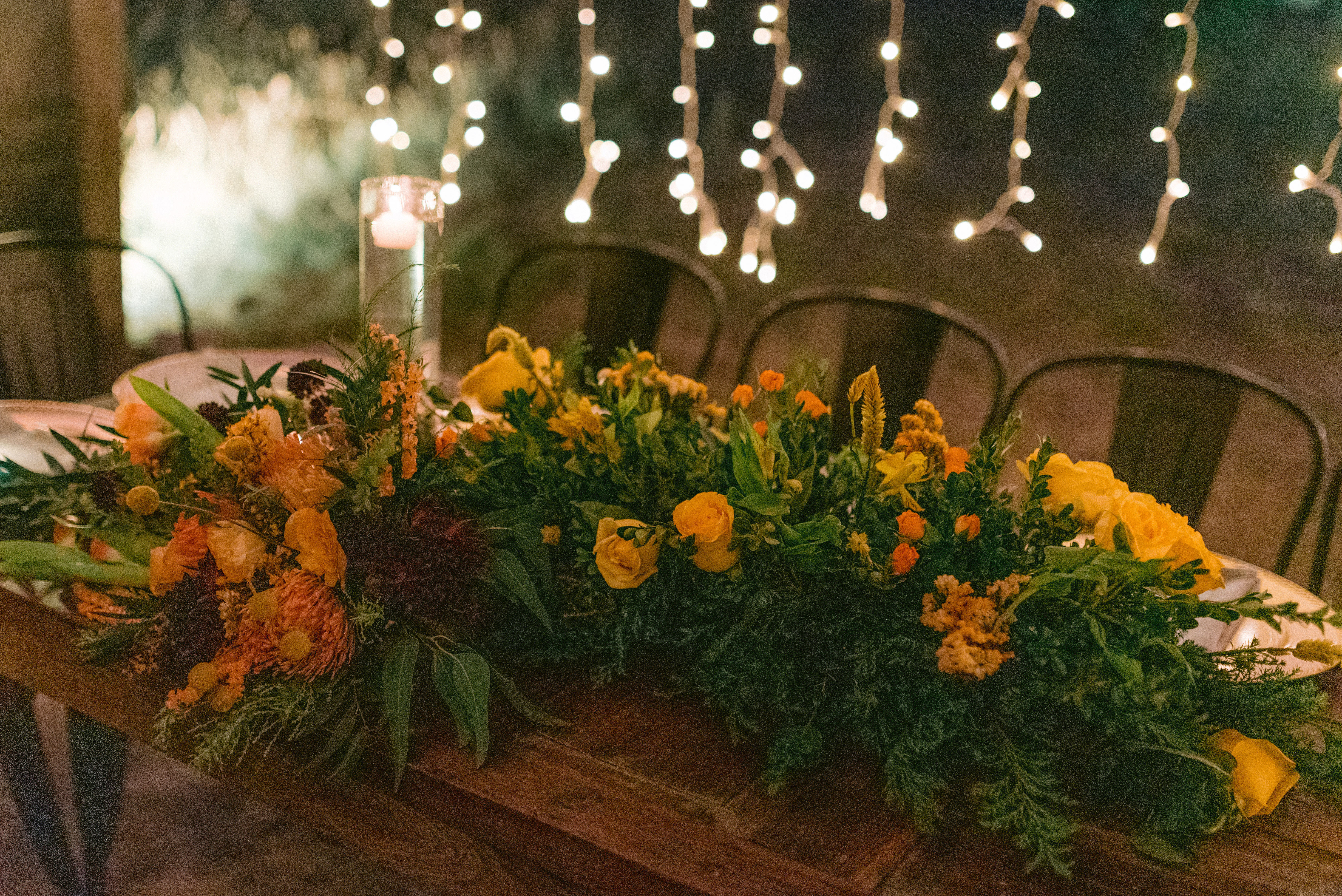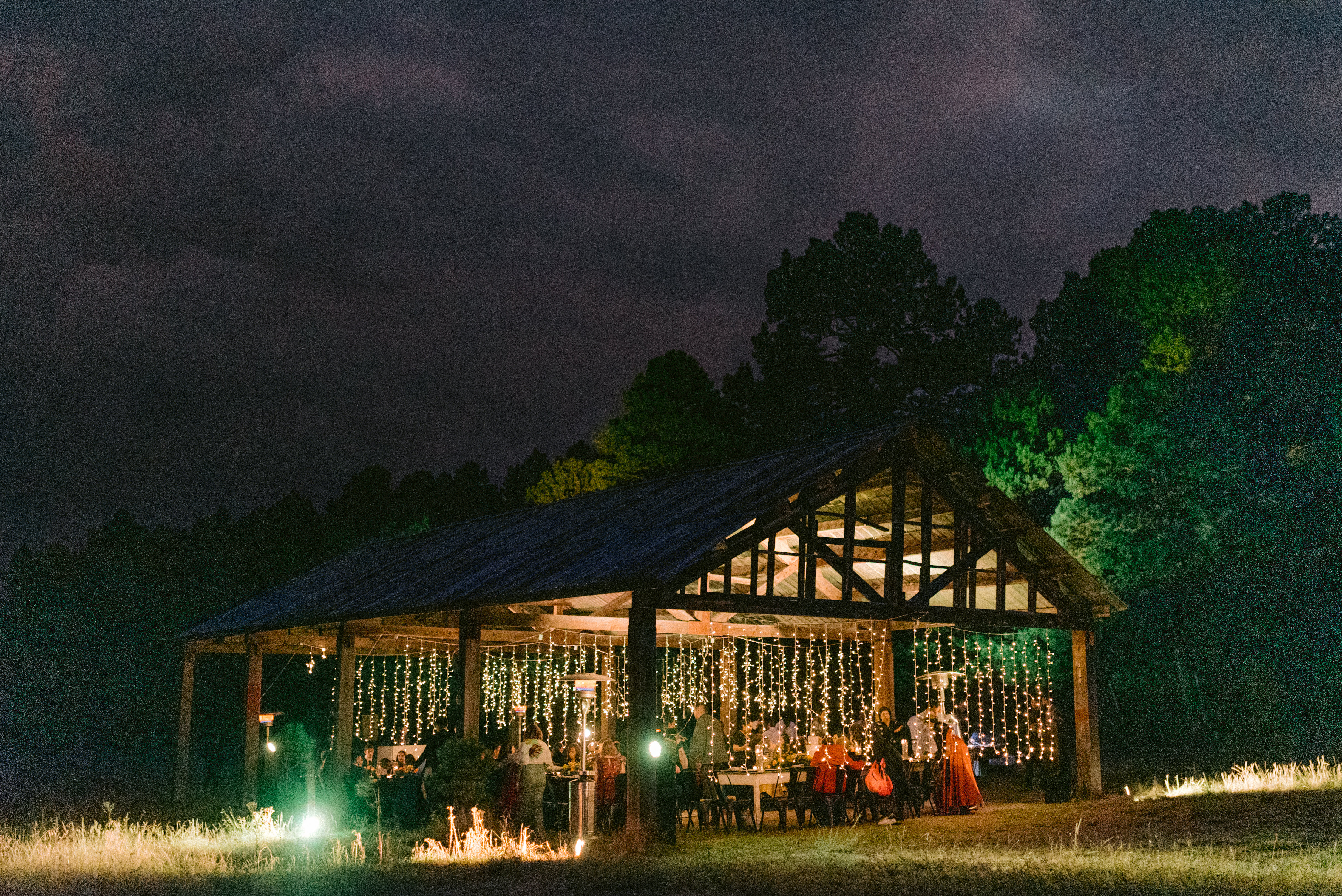 Para la recepción elegimos la ubicación ideal: un solitario granero de madera separado del resto del lugar, desde que lo vimos supimos que era ideal para ellos dos y no nos equivocamos. El techo lo convertimos en miles de lucecitas que caían en cortinas de luz sobre las mesas de madera sobre las que descansaban caminos de rosas color durazno, follajes verdes y detalles de velas.