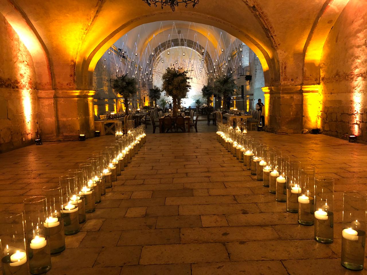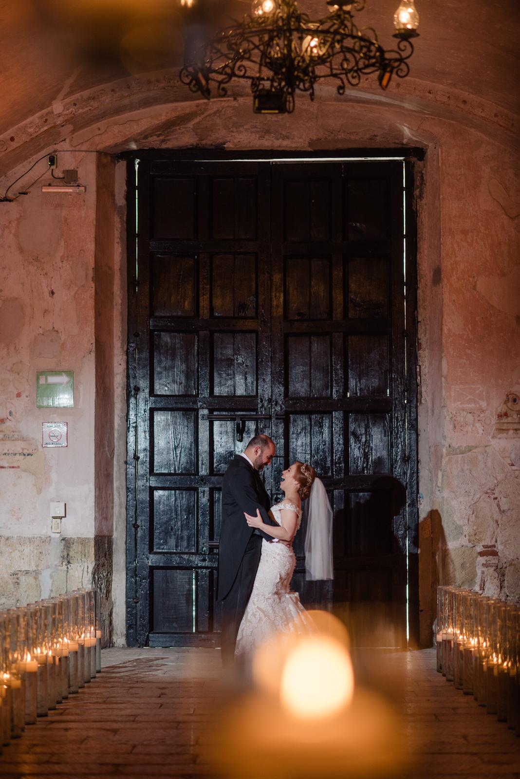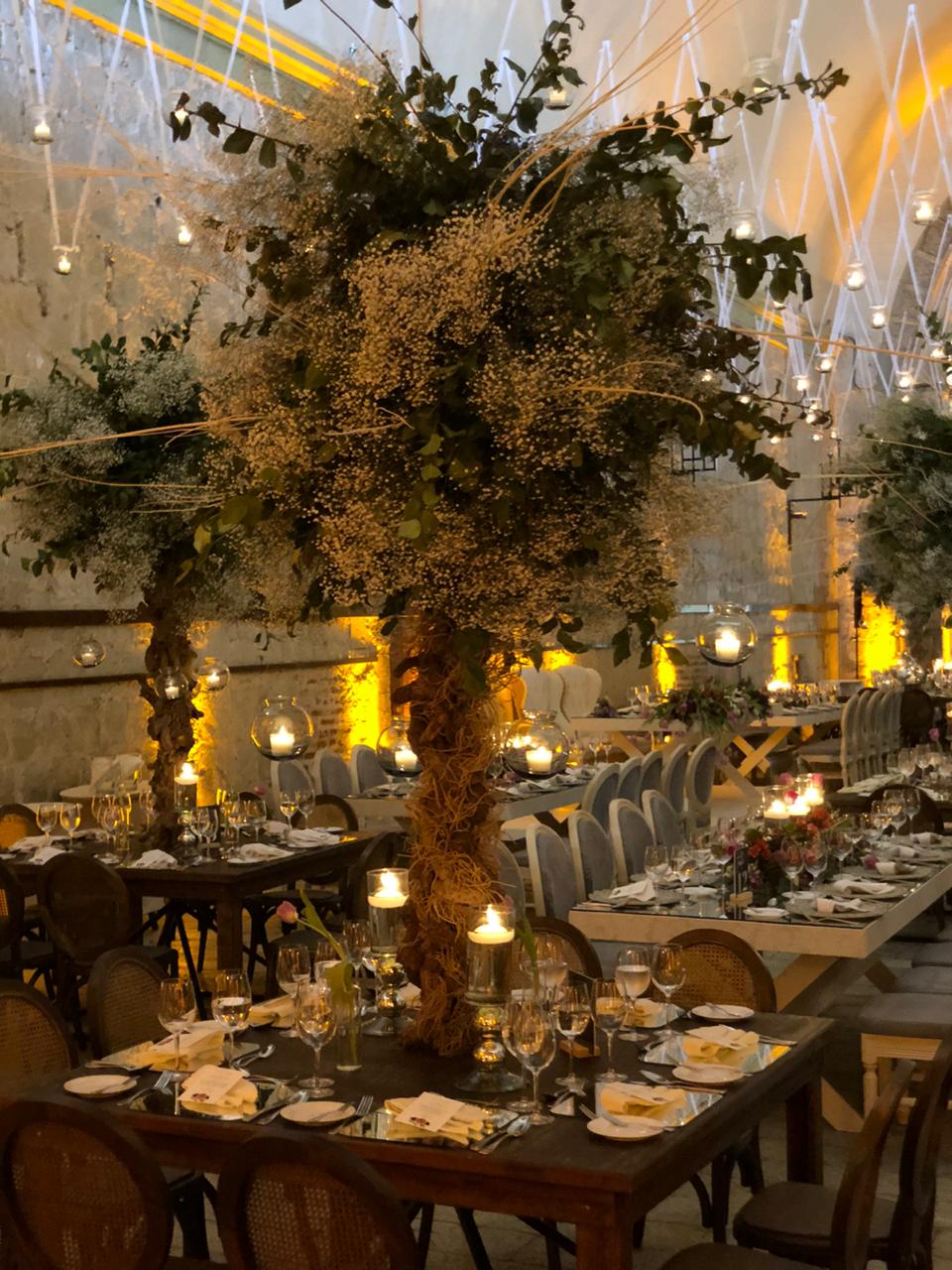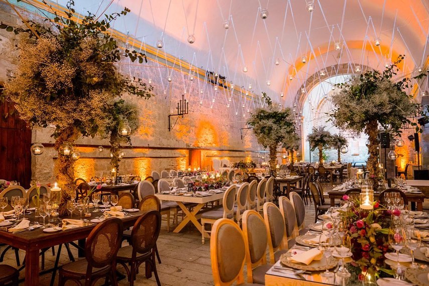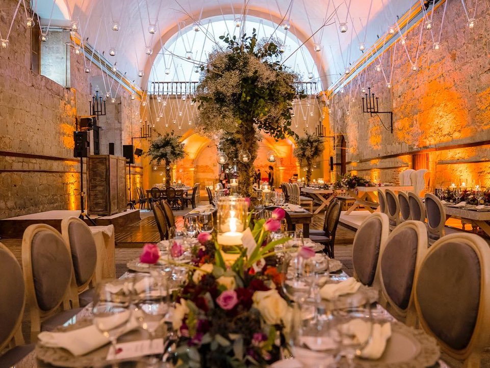 Ya en la recepción, la decoración a cargo de Victorio Amador, Decoración de Eventos, tenía que ir acorde a la arquitectura del lugar, combinando modernidad y tradición, detalles soberbios encuadrados en paredes llenas de historia, ¿se imaginan arboles rodeados de tulipanes dentro de un salón de piedra de siglo XVI iluminado con cientos de velas? Ahí se sirvió la exquisita cena de tres tiempos, el sabor evidentemente tenía que correr a cargo de la herencia mexicana: chiles, quesos, mole y chocolate, fueron los sabores preponderantes.