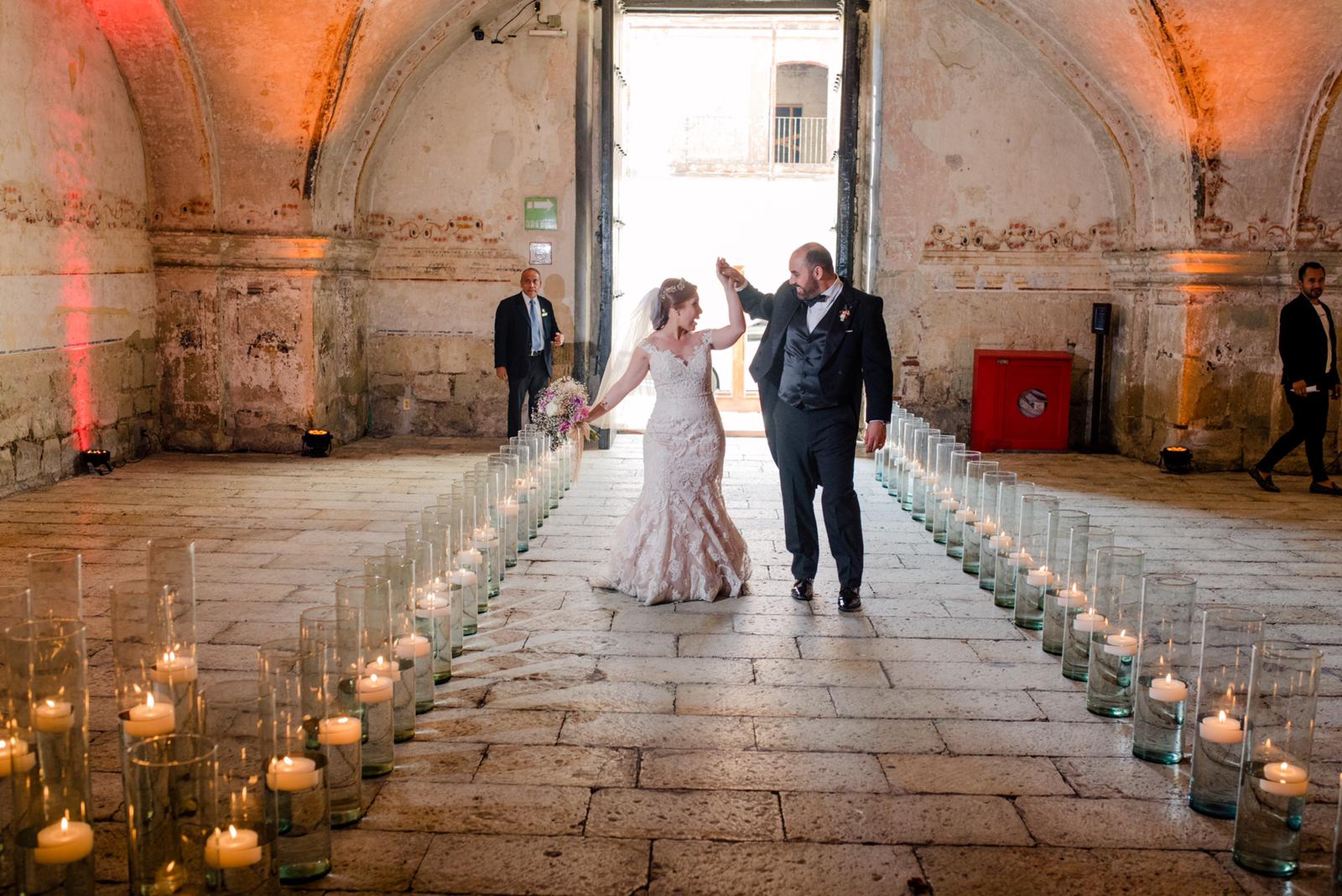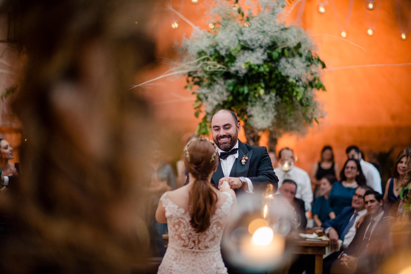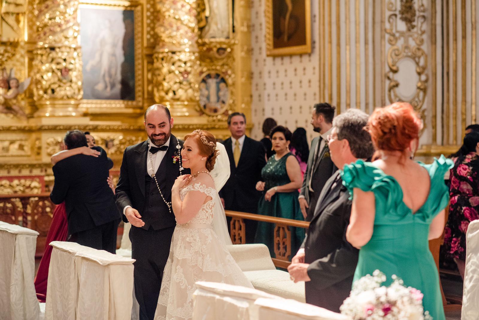 La ceremonia religiosa estuvo llena de tradición y emoción; a la salida, ¡la fiesta comenzó!, una calenda desde el templo hasta el ex convento repleta de música, gigantes mojigangas y shots de mezcal (obviamente, porque Oaxaca…) para avivar la calidez que ya se sentía en todos, ya verán las fotografías hechas por nuestro amigo Danny Cuevas Wedding Photography.