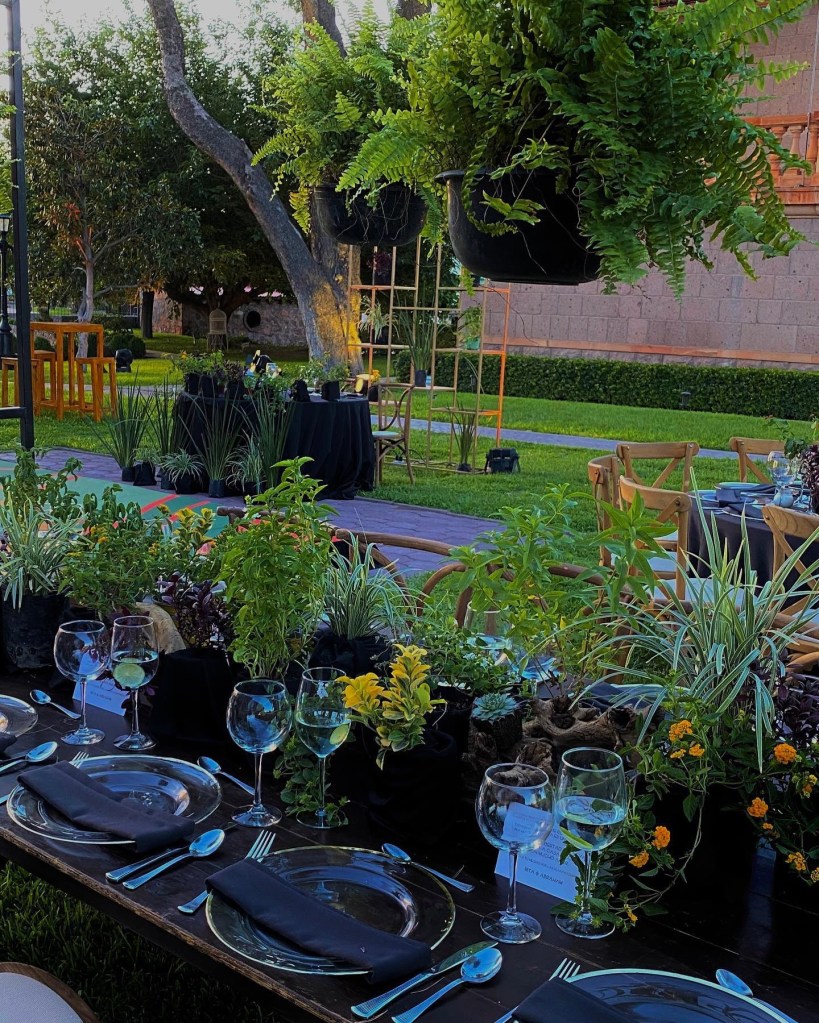 La propuesta que ellos amaron fue que tuvieran una boda viva, en lugar de utilizar flores y follajes cortados utilizaríamos plantas con vida. Sobre cada mesa un mensaje para que todos los invitados estuvieran al tanto y al terminar la celebración de su amor se llevaran con ellos ese sentimiento para que alimentaran el recuerdo que habían elegido para llevarse consigo en la forma de la planta que más les haya gustado.