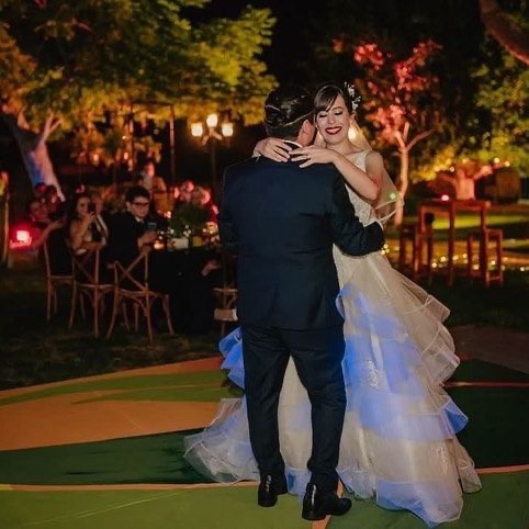 Además de las plantas vivas por toda la boda que ademas de decorar aromatizaban todo el lugar, los novios querían combinarla con un sentimiento de pertenencia para los invitados que venían de diferentes partes y que mejor para simbolizar ese sentimiento que una pista pintada a mano inspirada por el tequila y el mezcal, con una planta de agave (maguey) con colores vibrantes a juego con la naturaleza vital alrededor y que ademas replicamos con luces por todo alrededor de la fiesta. Que al igual que la decoración estuvo muy viva durante toda la noche.