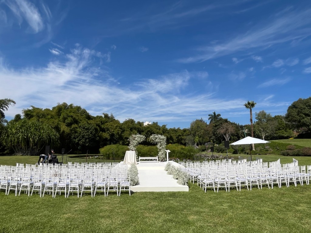 Una ceremonia completamente en blanco, bordeando un pequeño lago de nenúfares, el novio esperando por ella al final del pasillo nupcial y todos los presentes deseando volver a casarse o hacerlo por primera vez. ¡Suspiros!