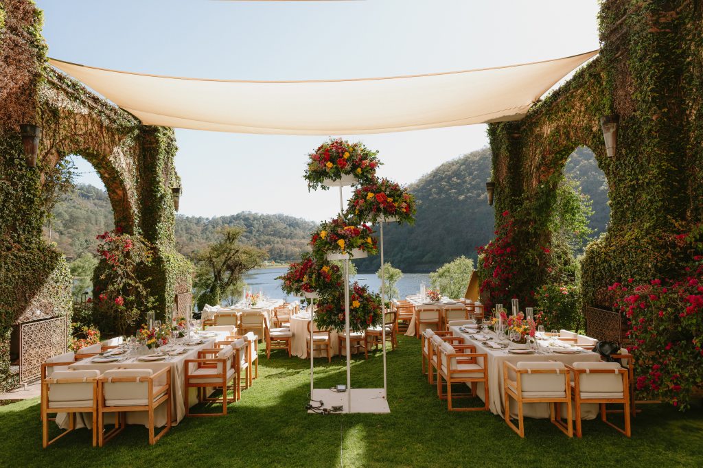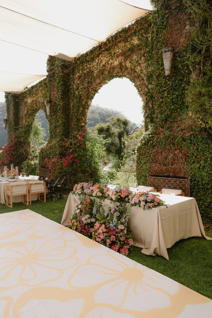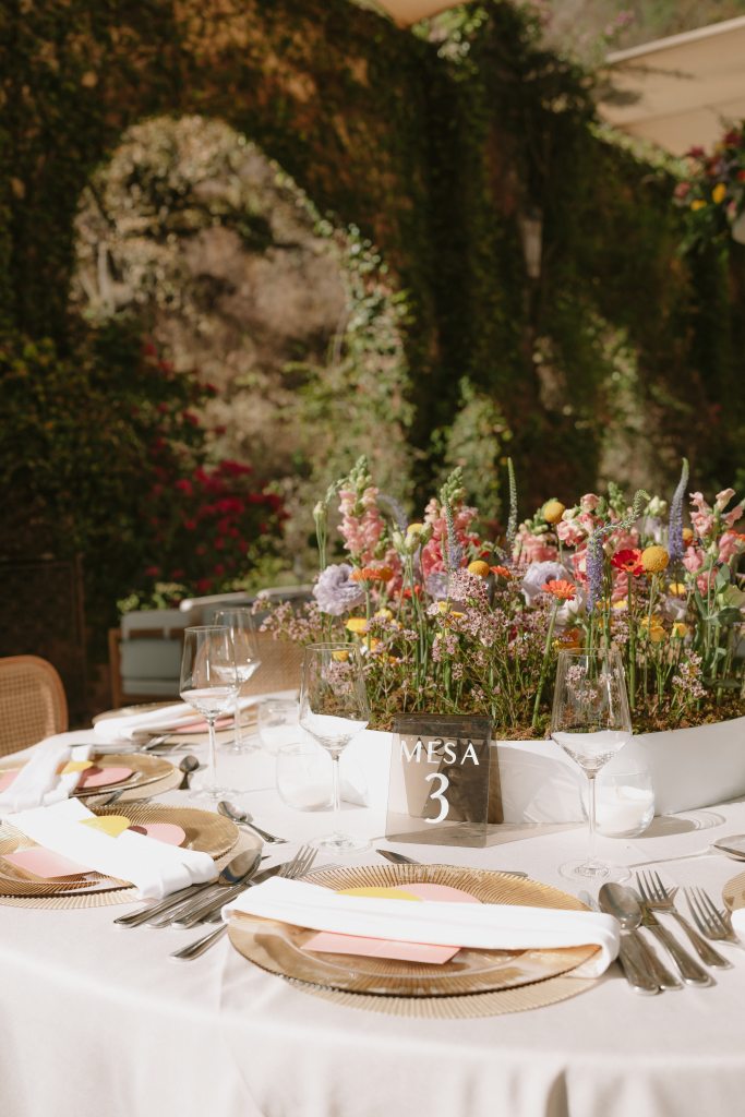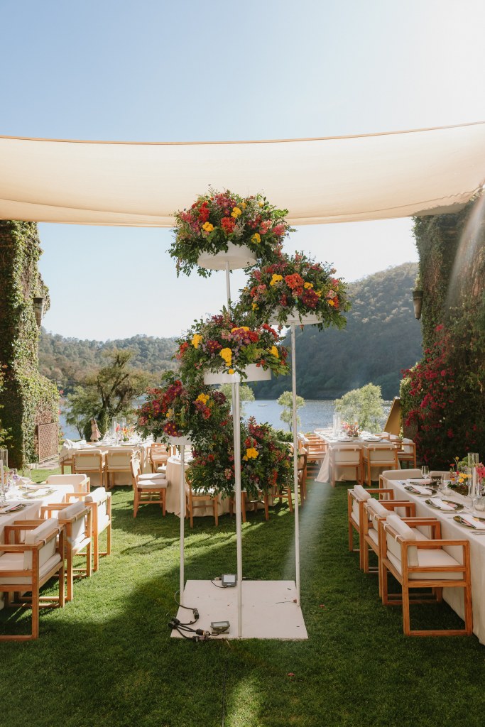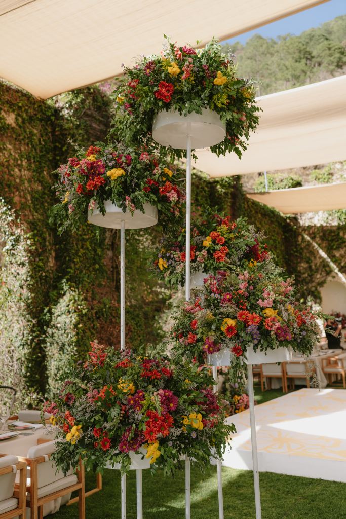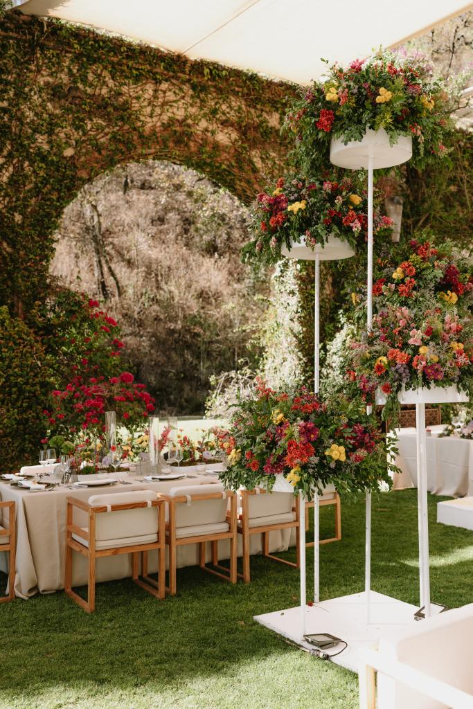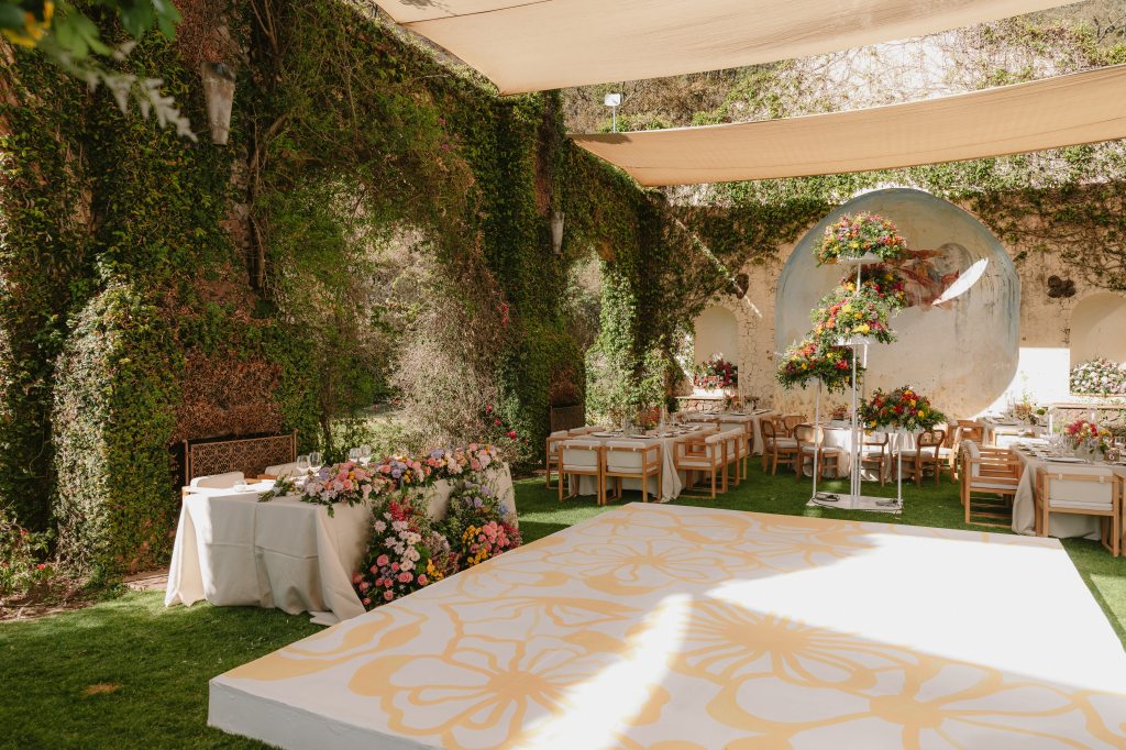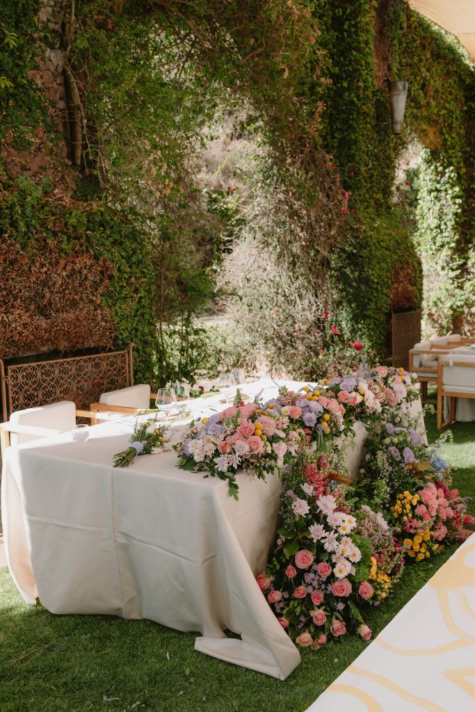 Tenemos el escenario perfecto para una boda primaveral, flores en colores vibrantes en mesas, columnas, pilares y por todo el lugar. Y así, el sueño idílico se vuelve realidad.