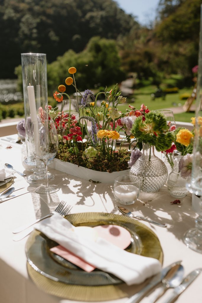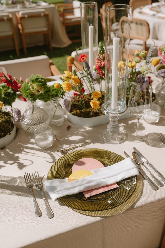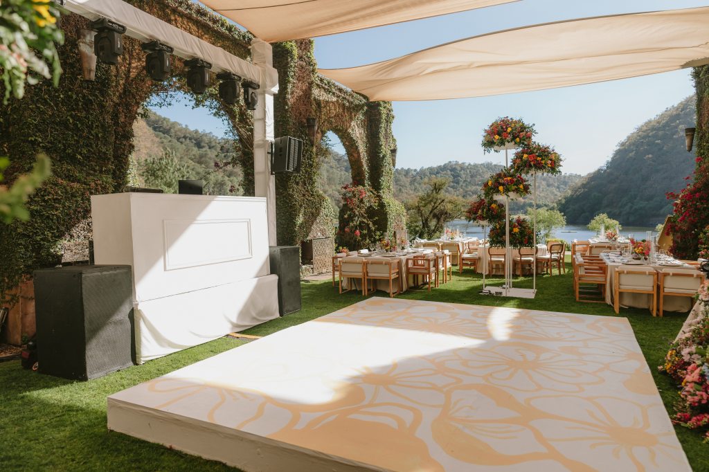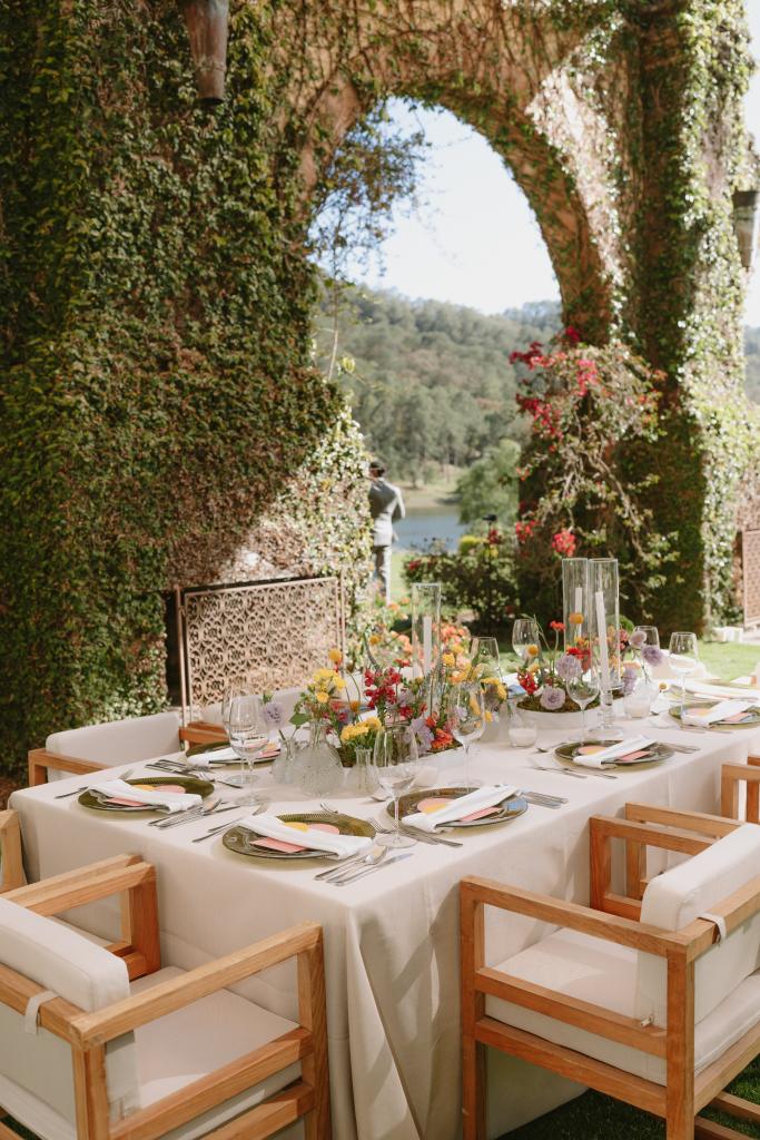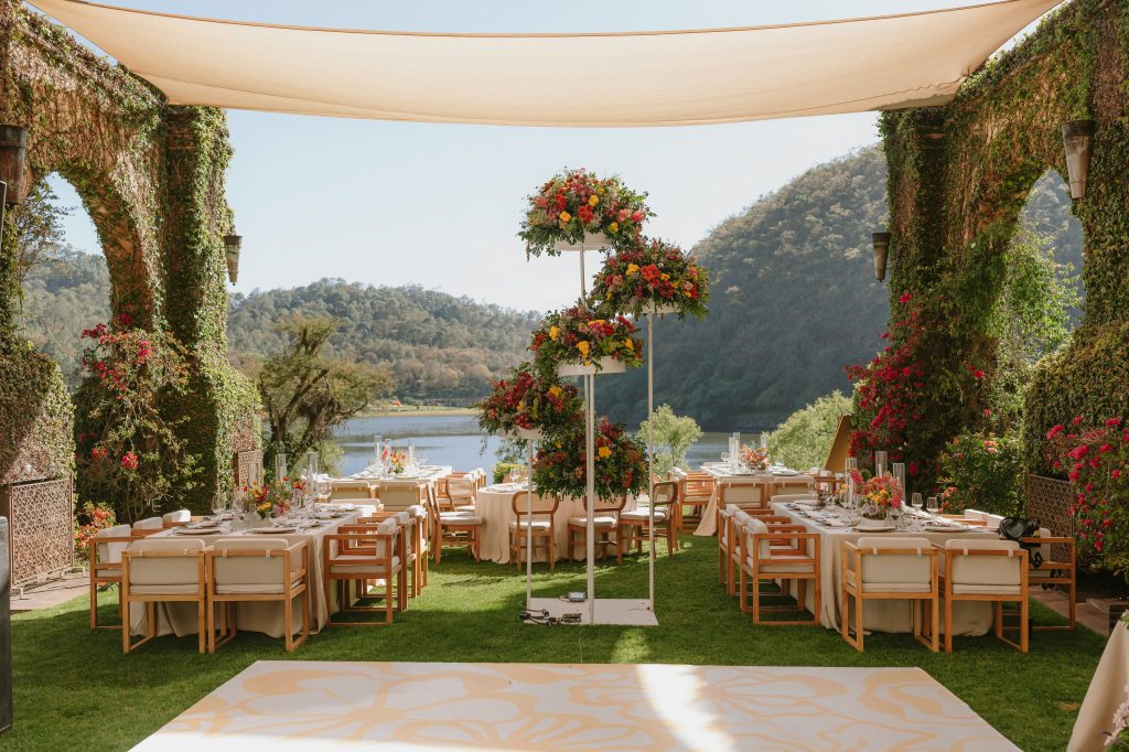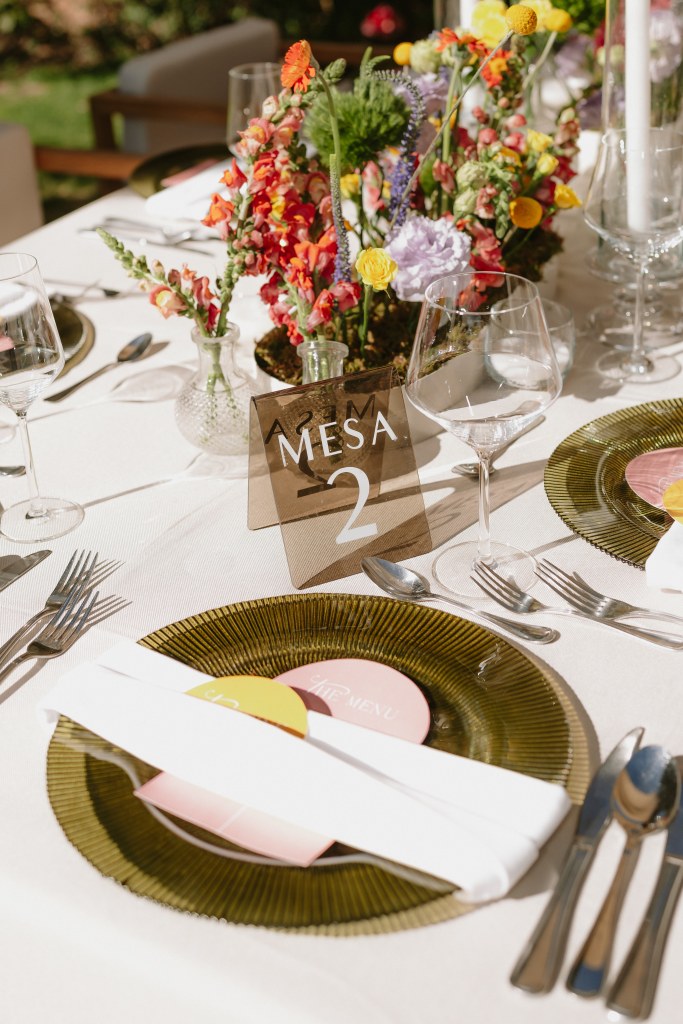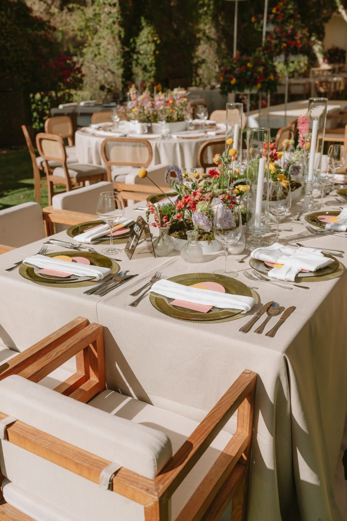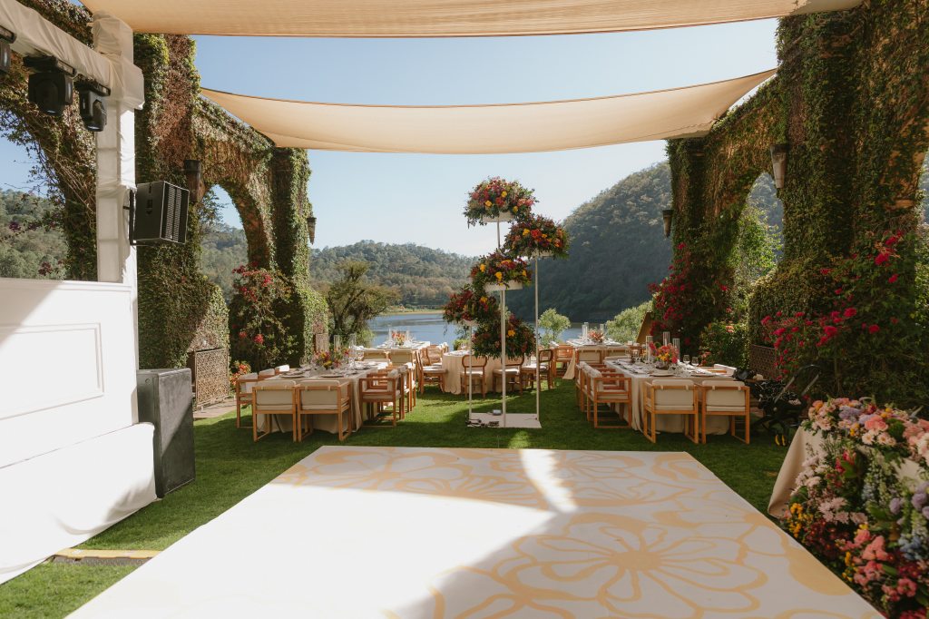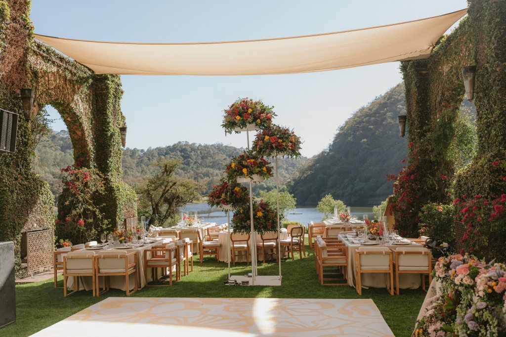 Tenemos el escenario perfecto para una boda primaveral, flores en colores vibrantes en mesas, columnas, pilares y por todo el lugar. Y así, el sueño idílico se vuelve realidad.