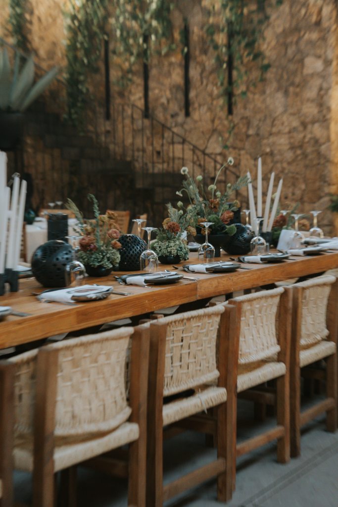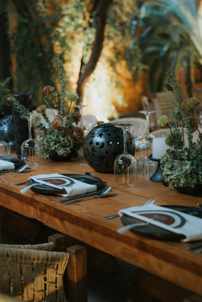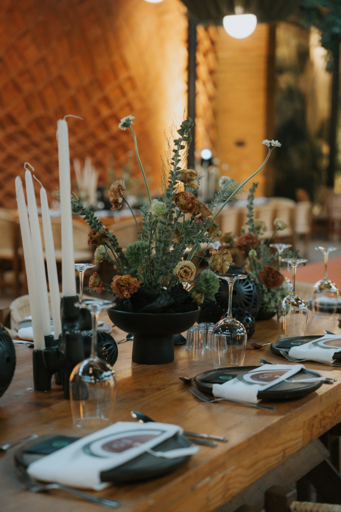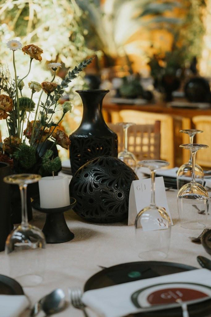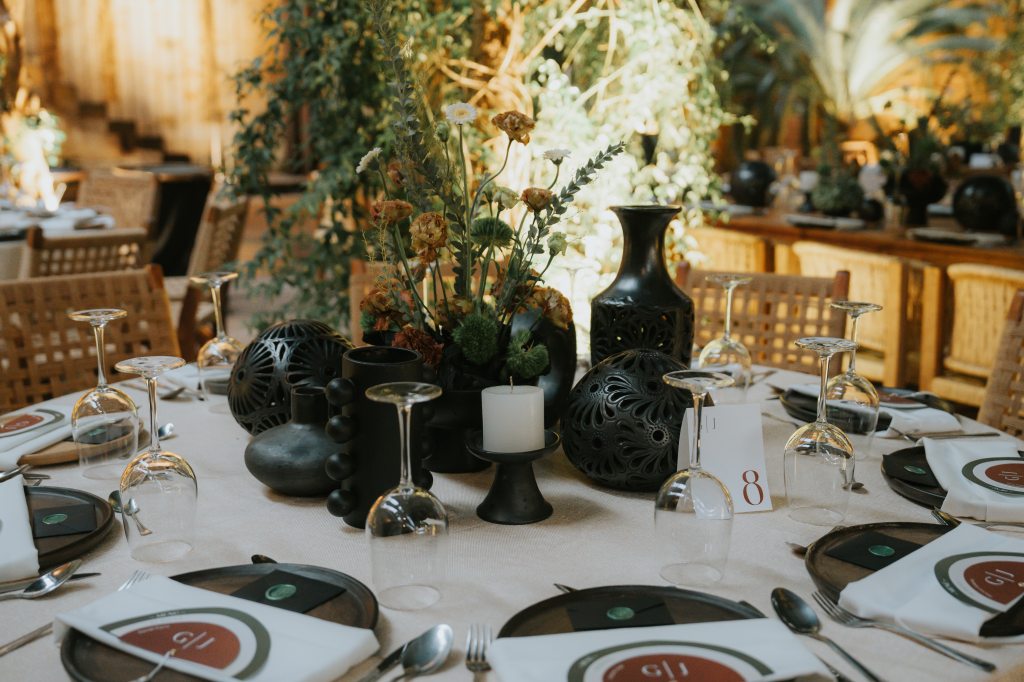 La decoración, con fibras naturales, cerámica negra, velas y flores silvestres, transformó el espacio en un rincón lleno de magia oaxaqueña. Cada detalle hablaba de raíces, de historia, de conexión.