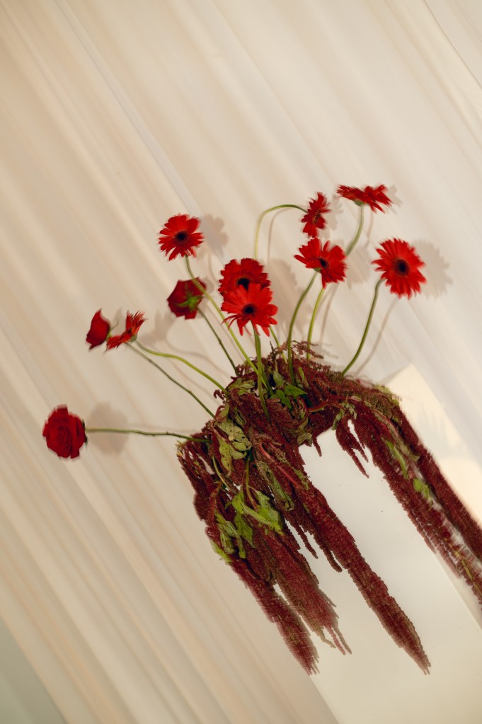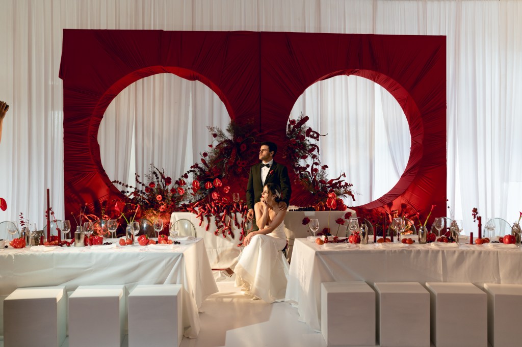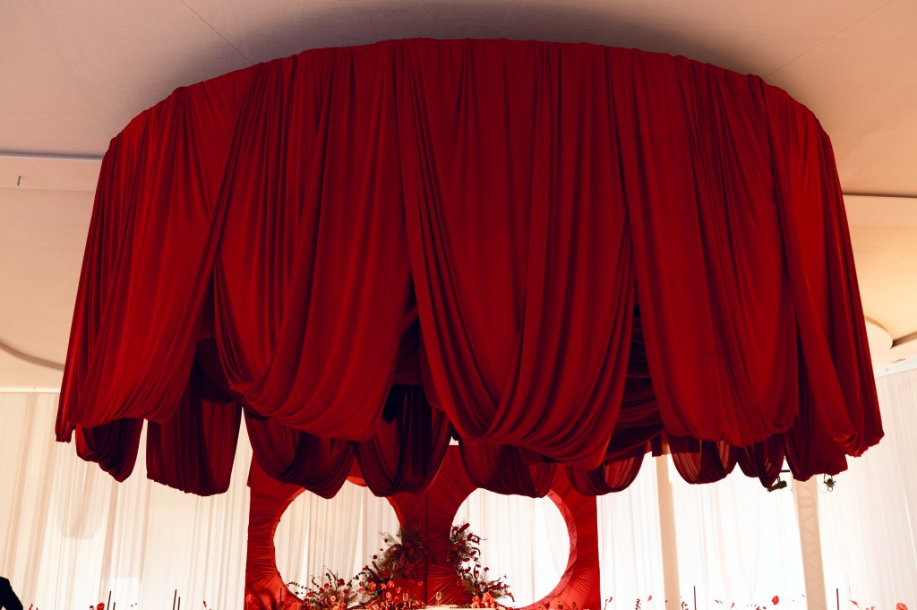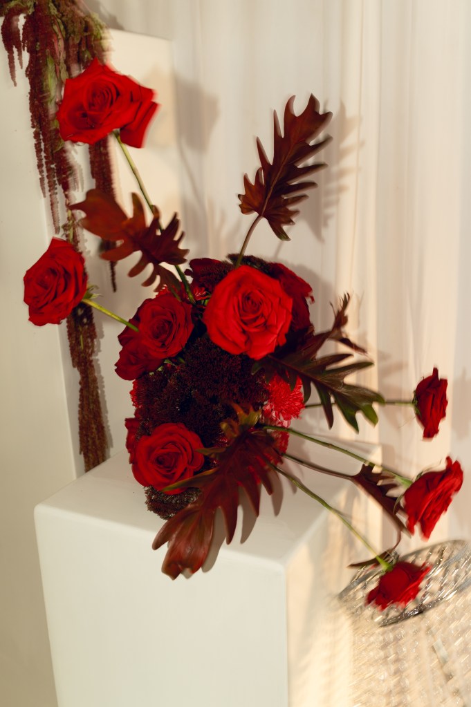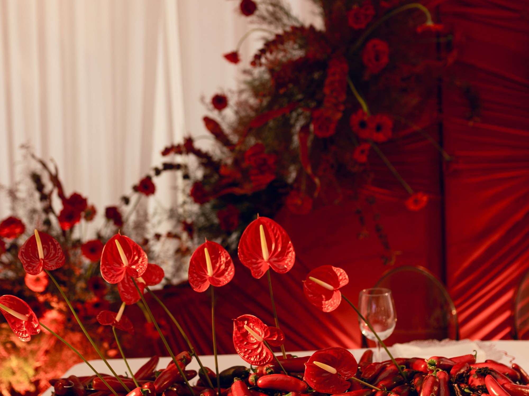 El rojo fue mucho más que un color; fue un manifiesto visual que apareció en cada detalle: flores escultóricas, pimientos, cerezas, tomates cherry y hasta el piso fue intervenido.