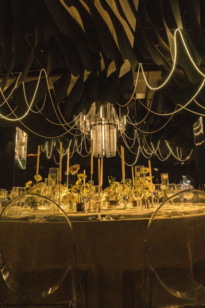 sta noche, la decoración desafía lo convencional, inmersa en una atmósfera neo-noir y vanguardista.