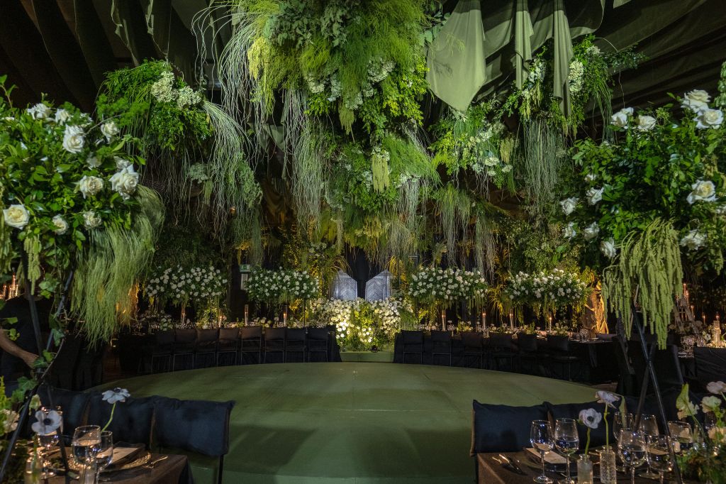 Cada detalle de esta boda fue pensado para contar una historia de romance clásico, envuelta en una atmósfera mágica que parecía sacada de un sueño. Bajo un techo cubierto de follaje y luces tenues, el salón se transformó en un jardín iluminado, donde las flores, las velas y los árboles creaban una armonía perfecta entre…